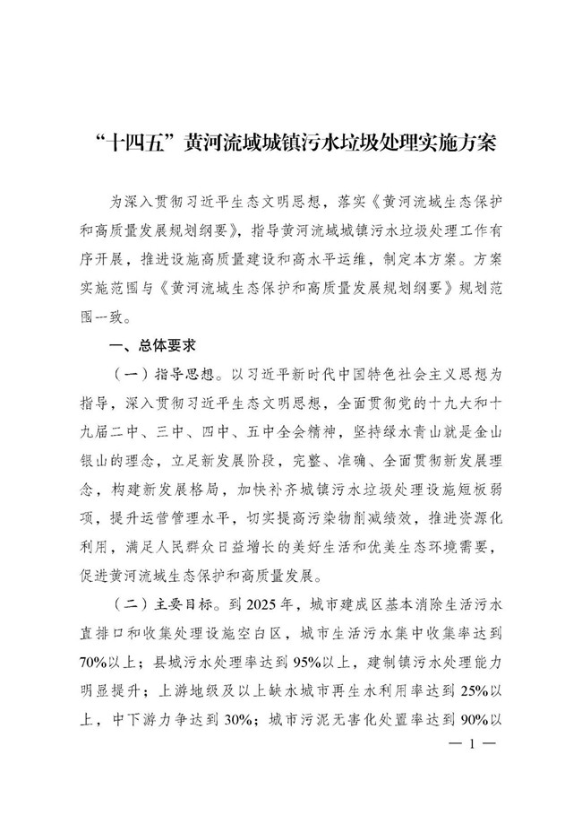 附件:《十四五”黃河流域城鎮(zhèn)污水垃圾處理實施方案》